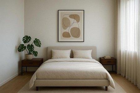 Ein beiges Polsterbett lässt sich vielen Einrichtungsstilen anpassen. Im skandinavischen Stil kombiniert man es mit hellem Holz, viel Weiß und einfachen, funktionalen Möbeln. Hier steht Helligkeit im Mittelpunkt. Beim Japandi-Stil treffen japanische Schlichtheit und skandinavische Gemütlichkeit aufeinander – das beige Bett wird mit schwarzen Akzenten und viel freier Fläche kombiniert.